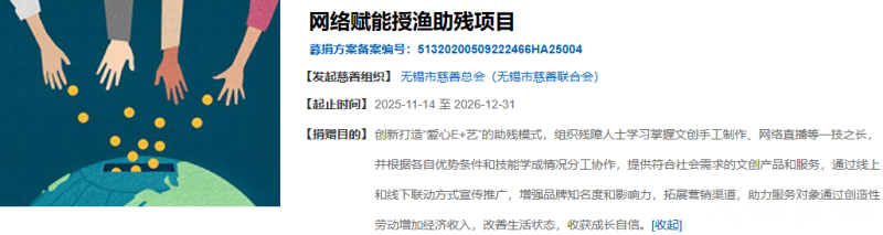 您的一次捐赠,能帮他们掌握文创制作、直播营销等技能,推开就业之门;您的一份关 注,能让更多人看见残障群体的才华,助力残健融合。